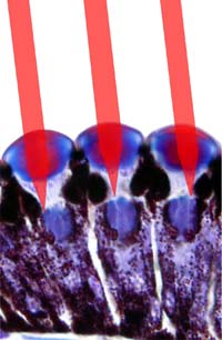 Mückenauge übertragen und in das Bild eines Längsschnitts der Ommatidien den