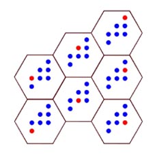 Lichtempfindlichkeit, dass von den sechs benachbarten Ommatidien jeweils ein